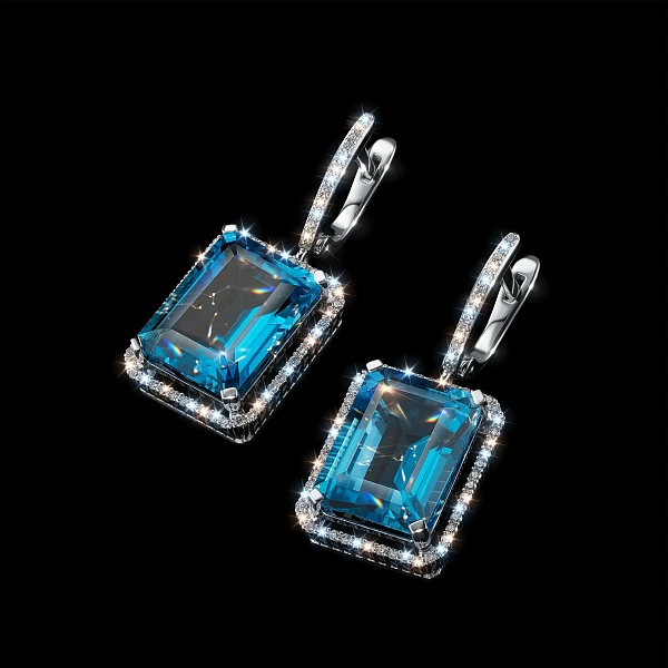 Серьги из комбинированного золота с и топазами — великолепное пополнение вашей коллекции украшений. Комбинированное золото подчеркивает игру света на алмазных гранях, не боится влаги, подходит для повседневного ношения. Наши товары реализуются только в фирменных салонах.