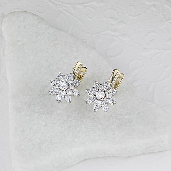 Серьги из комбинированного золота — великолепное пополнение вашей коллекции украшений. Комбинированное золото подчеркивает игру света на алмазных гранях, не боится влаги, подходит для повседневного ношения. Наши товары реализуются только в фирменных салонах.