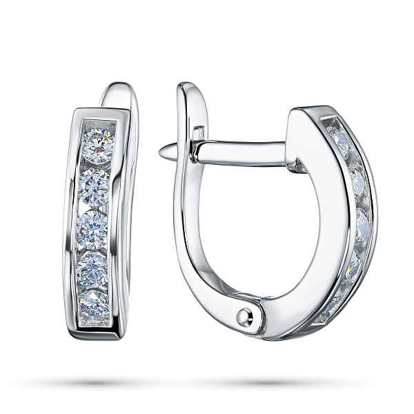 Серьги из серебра — великолепное пополнение вашей коллекции украшений. Серебро подчеркивает игру света на алмазных гранях, не боится влаги, подходит для повседневного ношения. Наши товары реализуются только в фирменных салонах.