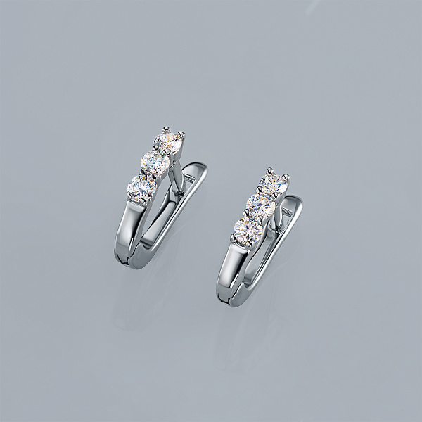 Серьги из серебра — великолепное пополнение вашей коллекции украшений. Серебро подчеркивает игру света на алмазных гранях, не боится влаги, подходит для повседневного ношения. Наши товары реализуются только в фирменных салонах.