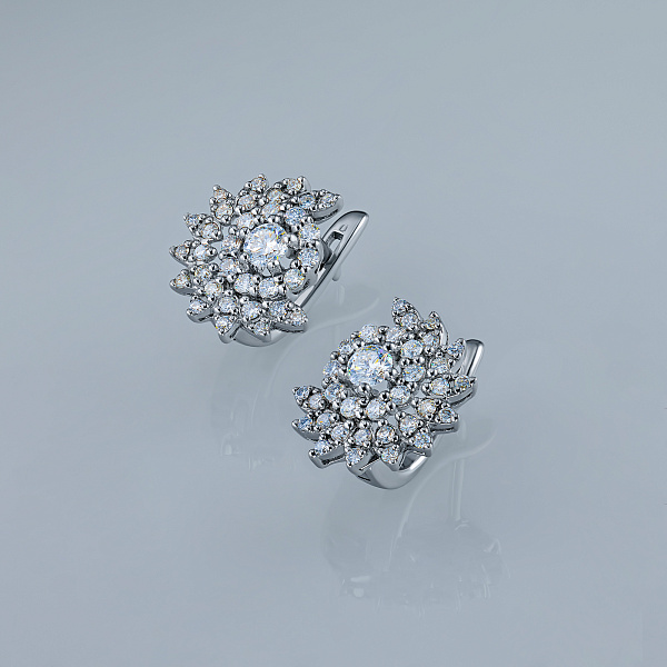 Серьги из серебра — великолепное пополнение вашей коллекции украшений. Серебро подчеркивает игру света на алмазных гранях, не боится влаги, подходит для повседневного ношения. Наши товары реализуются только в фирменных салонах.