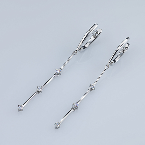 Серьги из серебра — великолепное пополнение вашей коллекции украшений. Серебро подчеркивает игру света на алмазных гранях, не боится влаги, подходит для повседневного ношения. Наши товары реализуются только в фирменных салонах.