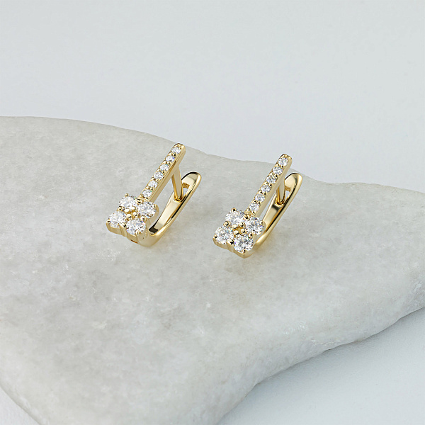 Серьги из желтого золота с бриллиантами — великолепное пополнение вашей коллекции украшений. Продается по цене от производителя (1 078 060 ₸). Ювелирное изделие с настоящими бриллиантами изготовлено на заводе «ЭПЛ Даймонд». Желтое золото подчеркивает игру света на алмазных гранях, не боится влаги, подходит для повседневного ношения. Наши товары реализуются только в фирменных салонах.