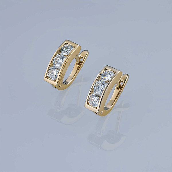 Перед вами — стильные серьги весом 3.79 грамма. Изделия прошли опробование в пробирной палате РФ (585 проба). Поставляются в фирменной упаковке. Ознакомьтесь с нашим каталогом, возможно, вы захотите подобрать кольцо или подвеску в тон.