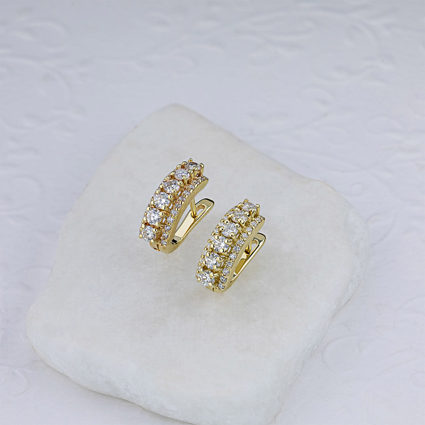 Перед вами — стильные серьги весом 5.02 граммов. Изделия прошли опробование в пробирной палате РФ (585 проба). Поставляются в фирменной упаковке. Ознакомьтесь с нашим каталогом, возможно, вы захотите подобрать кольцо или подвеску в тон.