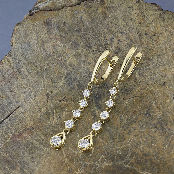 Серьги из желтого золота — великолепное пополнение вашей коллекции украшений. Желтое золото подчеркивает игру света на алмазных гранях, не боится влаги, подходит для повседневного ношения. Наши товары реализуются только в фирменных салонах.