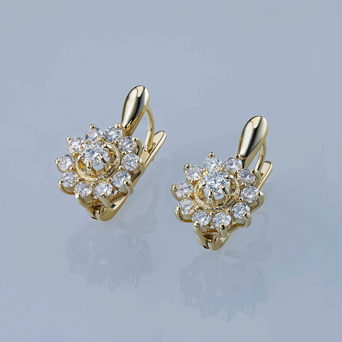 Серьги из желтого золота — великолепное пополнение вашей коллекции украшений. Желтое золото подчеркивает игру света на алмазных гранях, не боится влаги, подходит для повседневного ношения. Наши товары реализуются только в фирменных салонах.