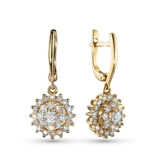 Серьги из желтого золота — великолепное пополнение вашей коллекции украшений. Желтое золото подчеркивает игру света на алмазных гранях, не боится влаги, подходит для повседневного ношения. Наши товары реализуются только в фирменных салонах.