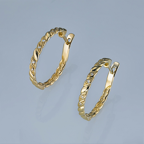 Перед вами — стильные серьги весом 3.61 грамма. Изделия прошли опробование в пробирной палате РФ (585 проба). Поставляются в фирменной упаковке. Ознакомьтесь с нашим каталогом, возможно, вы захотите подобрать кольцо или подвеску в тон.
