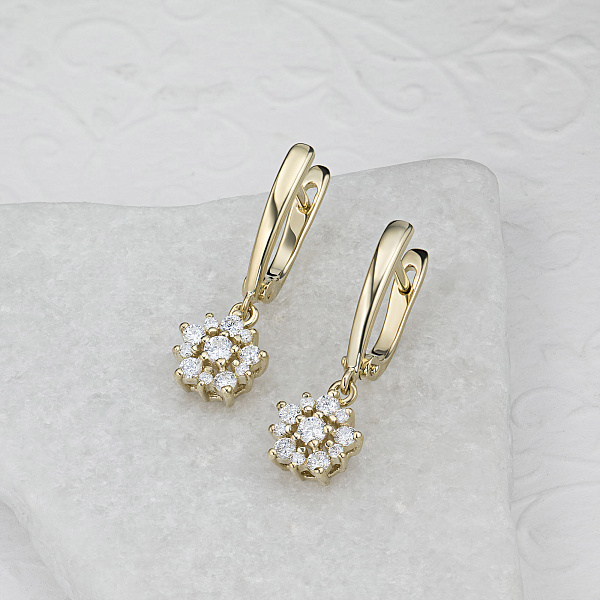 Серьги из желтого золота — великолепное пополнение вашей коллекции украшений. Желтое золото подчеркивает игру света на алмазных гранях, не боится влаги, подходит для повседневного ношения. Наши товары реализуются только в фирменных салонах.